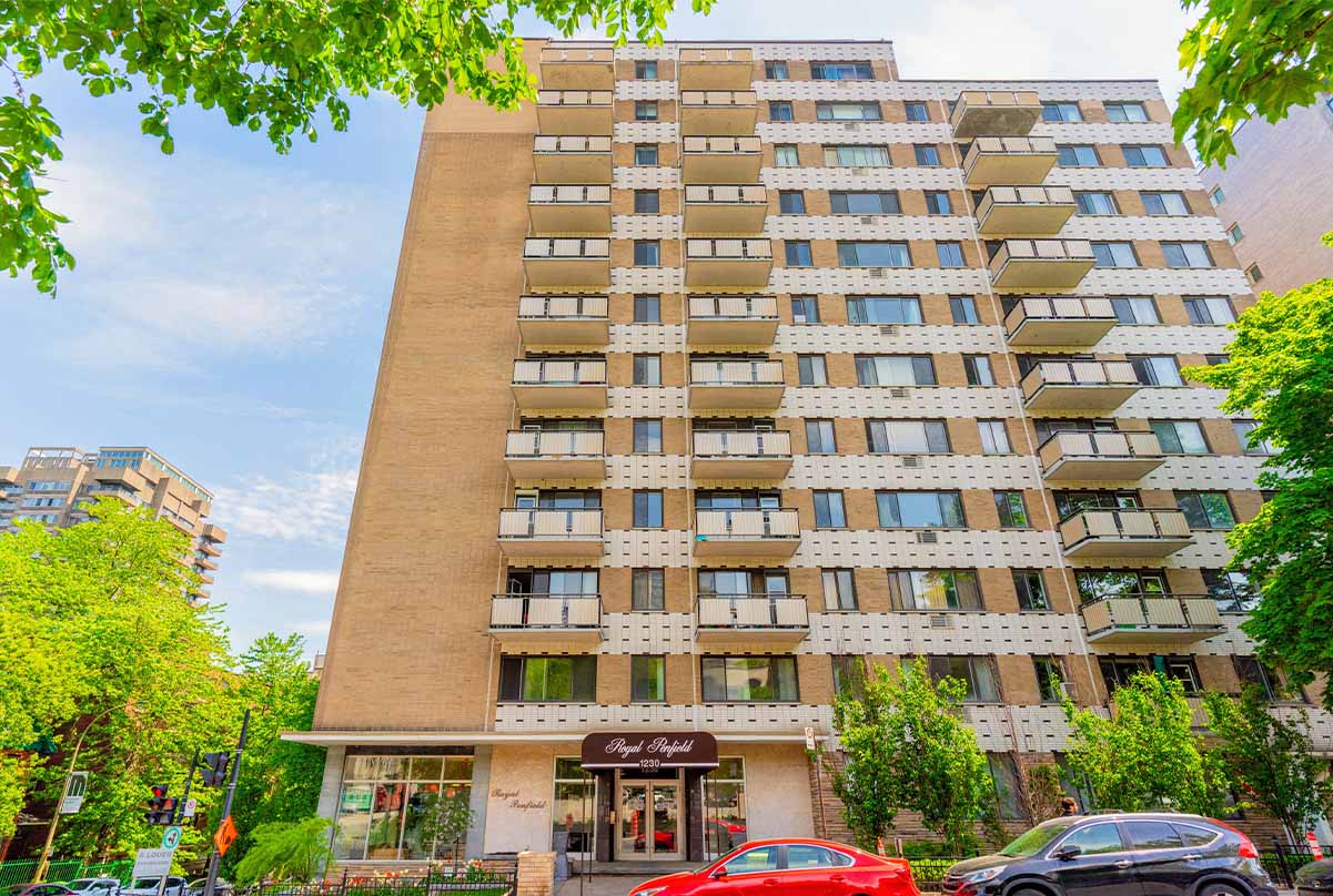 Le Royal Penfield, un immeuble emblématique des années 60 qui marie charme rétro et confort moderne. Avec ses 12 étages, sa terrasse sur le toit et son stationnement intérieur, il offre un cadre de vie pratique et élégant au sud du parc Mont-Royal. À deux pas du centre-ville et des universités McGill et Concordia, cette adresse prestigieuse séduit ceux qui recherchent raffinement, confort et authenticité.